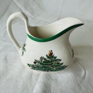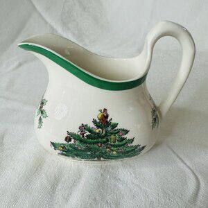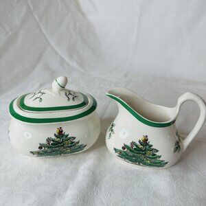 Vintage Spode Christmas Tree Sugar & Creamer Set Bowl Pitcher Lid Santa. Made in England. Includes original box. Measurements are in the pictures.