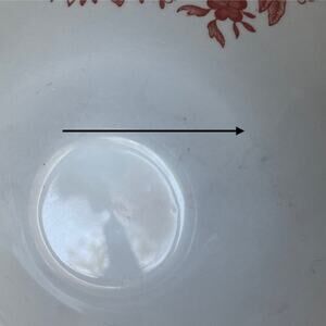 Lovely red and white floral pattern. Teacups have floral design inside cup.