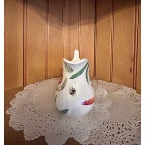 This creamer is decorated with a red and green floral and butterflies by Spode. The pattern was discontinued in 2009. Use to complete a set or as an additional decorative piece at your holiday table.