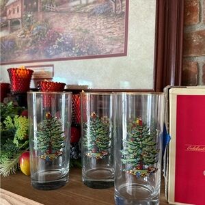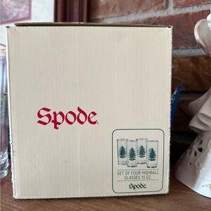 Vintage Spode Gold and Green Holiday Decor Set of 4 Highball Glasses 15oz