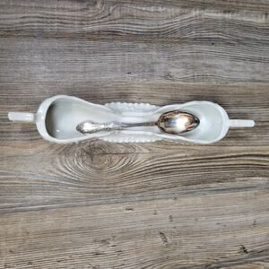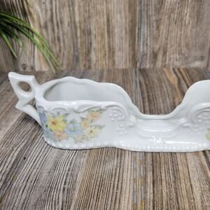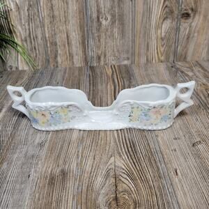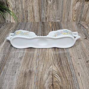 Vintage Spoon Holder, Buffet Silverware Holder, White Double Handle, Floral