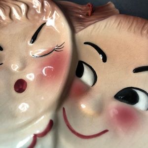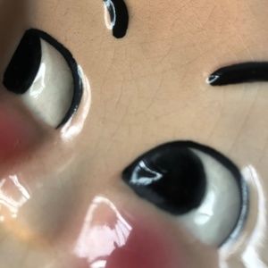 This is POSSIBLY one of the most adorable pieces of kitsch pottery I've ever picked up. This is a ceramic spoon rest from the HIGHLY collectible DeForest of California pottery company.