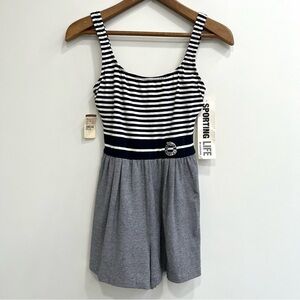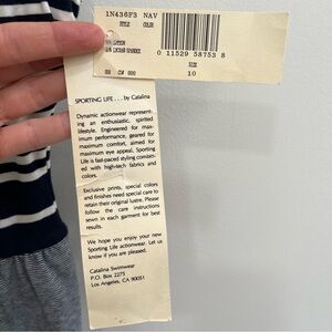 Vintage Deadstock Sporting Life by Catalina Nautical Stripes One Piece Shorts Navy White Swimsuit 10. This is so cute! Tagged size 10 but please refer to measurements to ensure fit. Made in USA