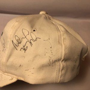 Vintage Sports Specialties NFL Philadelphia Eagles White Script Snapback Hat. It has a bunch of eagles player autographs.