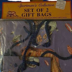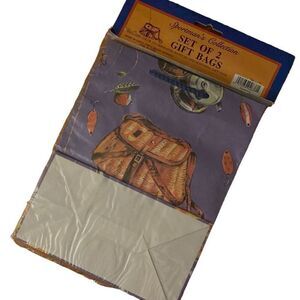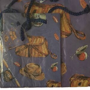 Vtg wrapping set of two gift bags with coordinating gift tags - still factory sealed. Fishing themed design with rods , reels , lures , fly fishing …