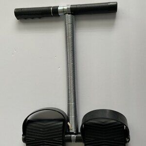 Vintage spring action rowing exerciser from the 1980's. Compact pull-up rowing machine. Barely used. In original box. 17" long.