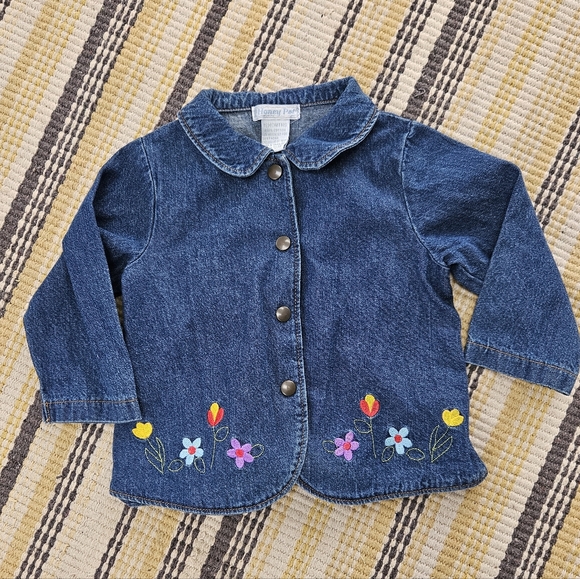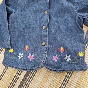 The cutest vintage denim jacket! Snap buttons in the front. Lightweight cotton. Great spring jacket. Size 18 month. In great condition.