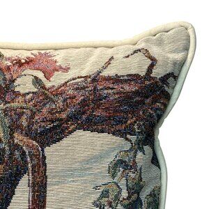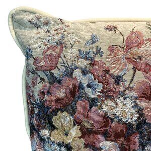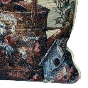 This decorative pillow features a vintage-inspired tapestry design with intricate floral and rustic elements, adding charm and elegance to home decor.