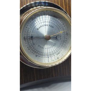 Vintage Springfield Instrument Co. Brass Eagle & Wood Barometer (Mid Century)