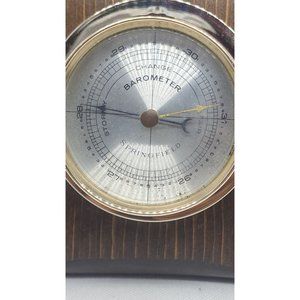 Add a touch of vintage charm to your home or office with this Vintage Springfield Instrument Co. Brass Eagle & Wood Barometer. Crafted in the mid-century style, this barometer features a brass eagle and wood design that will impress any admirer of antique décor. Keep track of the weather in style and showcase your love for vintage aesthetics with this unique barometer.