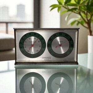 The Springfield Temperature and Humidity Gauge, made in the USA, is a collectible scientific instrument that accurately measures temperature and humidity levels. With a United States manufacture, this gauge represents quality craftsmanship and reliability in measuring environmental conditions. Ideal for enthusiasts of barometers or those interested in meteorology, this gauge adds a touch of nostalgia and Americana to any collection.