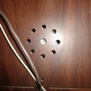 Springfield Weather Station is made of plastic that looks like wood with a metal hook at the top --