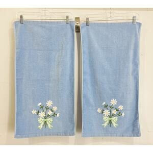 Vintage Springmaid Avanti Towel Set 4 Daisy Polka Dot Bow Blue Green Body Wash Cloth