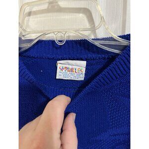 Vintage Sprinkles Women's Medium 80s Style Blue Knit Sweater Vest Cap Sleeve