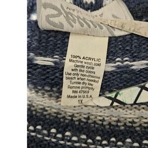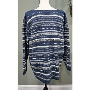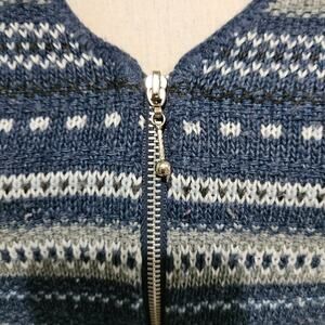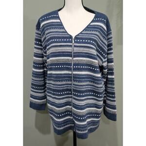Vintage Spunky Zip-up Sweater Knit Blue Striped Sweater Size 1X