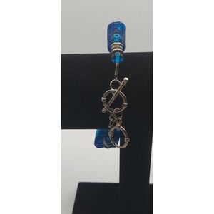 Vintage Square Bracelet Dark Turquoise Blue W Circle Closure Adjustable 9"