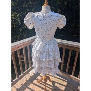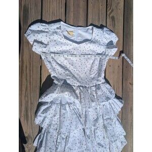 Vintage Square Dance Company Dress Tiered Polka Dot White Sweetheart Small