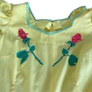 Vintage Square Dance Dress Hand Painted Roses RicRac Ruffles Yellow