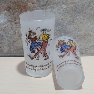 Vintage Square Dance Highball Federal Frosted Glass Tumblers Set of 2