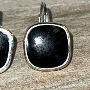 Vintage Square Drop Leaver Back Earrings Black And Silver Tone Classiccore Boho