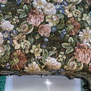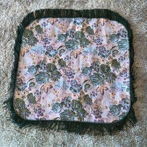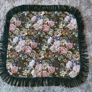 Square Floral Tapestry Table Doily Green Multi With Twisted Rope Fringe