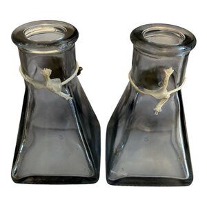 Vintage Square Glass Bottles with Brass Elephant Charms – 3.25” – Likely Used fo
