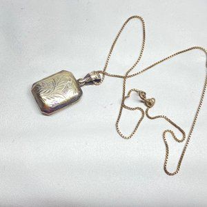 Vintage Square Locket Sterling Silver Necklace Photo Memory Children