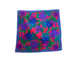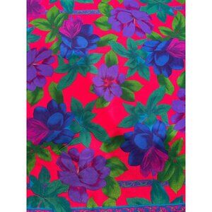 Vintage Square Scarf With Bold Floral Print In Red Purple & Blue Lightweight Pol