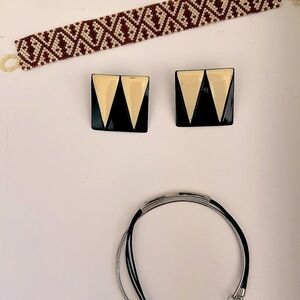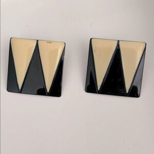 Vintage Square Shape Triangle Pattern Earrings Quarter Size Pierced Bohemian