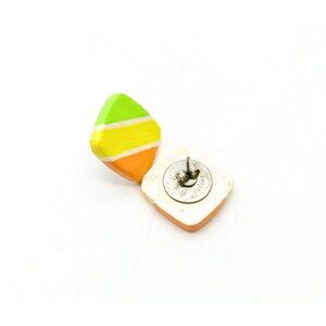 These vintage earrings feature a delightful combination of neon stripes in orange, yellow, and green, capturing the essence of retro style.