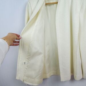 Vintage Square Shoulder Textured Blazer Sz M Ivory Cream Bouclé