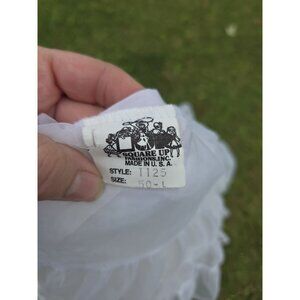White two tier ruffled taffeta petticoat. Made by Square Up. Tag states size 50-L, expanded waistband extends to 36 inches. Elastic and drawstring to secure.