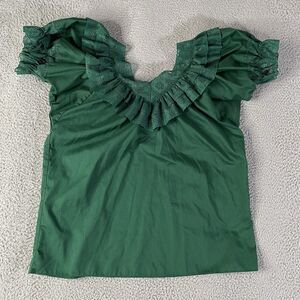 Vintage Square Up Dance Top Womens Small Green Lace Western Country Cottage USA