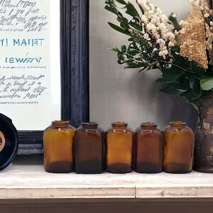 Vintage Squared Brown Glass Snuff Bottle Bundle of 5