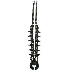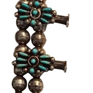 Vintage Squash Blossom Native American Zuni Petit Point Silver Turquoise Neck