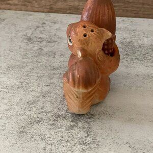 Vintage Squirrel Holding Acorn Salt Pepper Shakers Brown Hand-Painted Ceramic