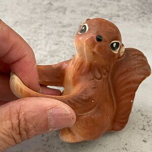 Vintage Squirrel Holding Acorn Salt Pepper Shakers Brown Hand-Painted Ceramic