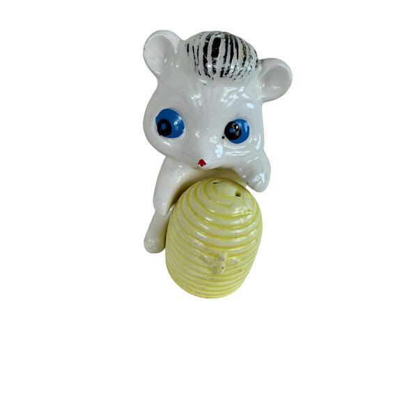 Vintage Squirrel Skunk & Beehive Glazed Ceramic Salt & Pepper Shakers Japan