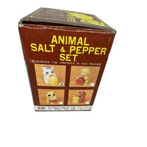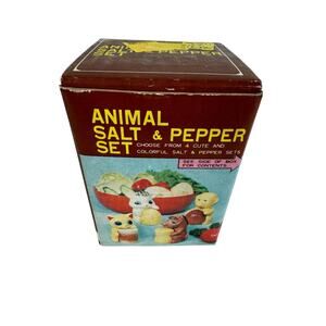 Vintage squirrel/skunk & beehive glazed ceramic salt & pepper shakers. Made in Japan. Comes in original box. Approx. Height: Squirrel-4", Bee's Nest-2.25".
