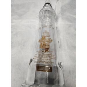 This Vintage St. Augustine Florida Lighthouse Empty Red Wine Bottle Decor Decanter is a unique and elegant collectible item made of glass with a lighthouse shape. The clear bottle features an all-over lighthouse pattern and a glossy finish, making it a perfect decorative piece for adults' home decor. Standing at 14 inches tall and 3.5 inches wide, this original item from the St. Augustine Lighthouse brand is a charming addition to any collection, showcasing a piece of United States history and maritime aesthetics.