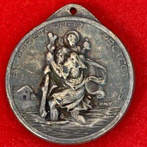 Vintage St. Christopher Protect Us & S.S. Giovanni XXIII Italy Silver Pendant