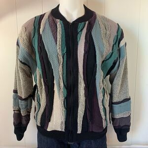 Vintage St Croix Knits Full Zip Lined Textured Knit Wool Mens Sweater Size XL