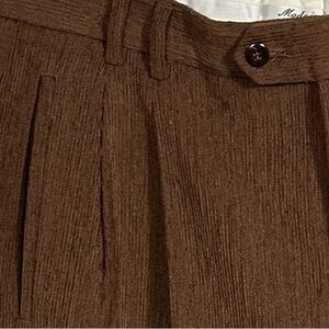 Vintage St. Croix men's pants, made in Italy of a wool blend. Brown supersoft microcorduroy, pleated front, rolled cuffs. Size 36. Side slash pockets.