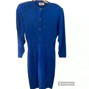 Vintage St. John By Marie Gray Knit Cobalt Blue Button Front Midi Dress Size 8