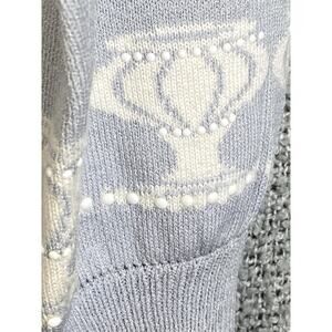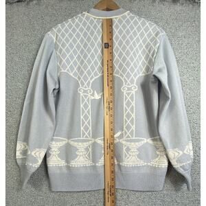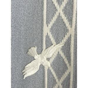 Please check measurements, measures larger than petite small. Material tag removed. Gorgeous St. John vintage piece with stunning details. Bird, lattice, water fountains and embellishments cause this sweater tell a story. All the quiet luxury and old memories met vibes.