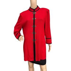 Vintage St. John Collection 16 Red Santana Knit Coat Jacket Mock Neck Fall 2003