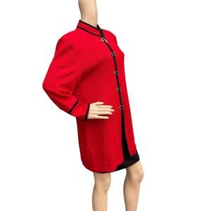Vintage St. John Collection 16 Red Knit Coat Jacket Long Santana Zip Mock Neck Fall 03