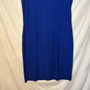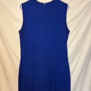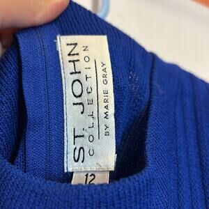 Vintage St. John Collection Santana Knit Blue Ribbed Sleeveless Sweater Dress 12