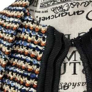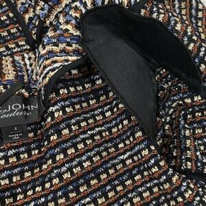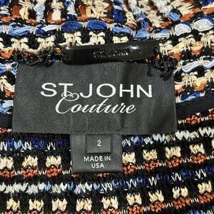 This vintage St John Couture Size 2 XS metallic knit cardigan is a unique piece from the 80s, made in the USA with wool blend material. It features a tight-knit design, long sleeves, round neckline, and shoulder pads, giving it a stylish and feminine look. The multicolor cardigan is a classic addition to any woman's wardrobe, perfect for adding a touch of retro glam to any outfit.