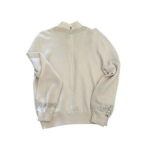 Vintage St. John Cream Beaded Sequin Embroidery knit Sweater Size Small